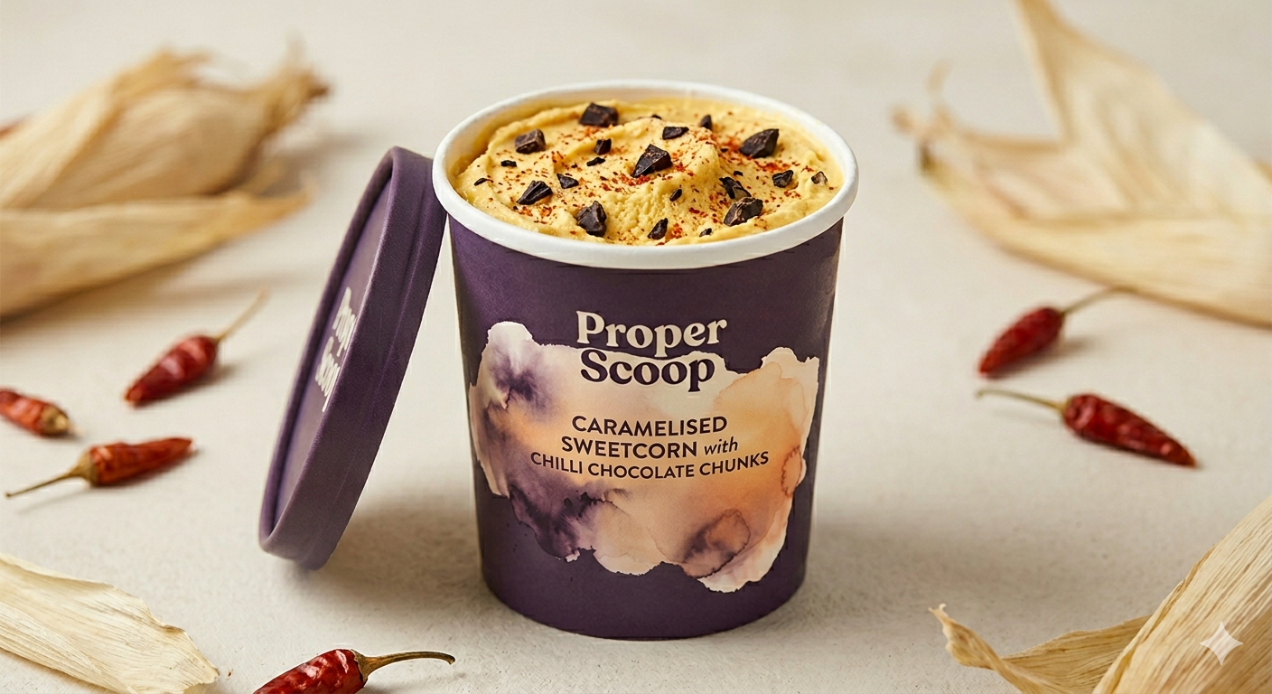 There is something almost illicit about the golden, butterscotch-heavy depth of this gelato. It begins with sweetcorn, sautéed in vegan butter until it is burnished and toasty, then steeped in a velvet bath of coconut milk and cream. The result is a 'custard' so glossy and thick it feels like a silken promise, even before the chill hits it. But the real mischief lies in the finish: shards of dark, chilli-spiked chocolate that cut through the sun-drenched sweetness with a sophisticated, slow-burn heat. It is not just ice cream; it is a buttery, spicy, plant-based covenant of pure pleasure.